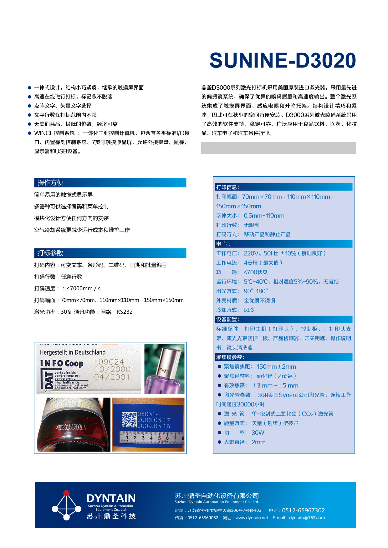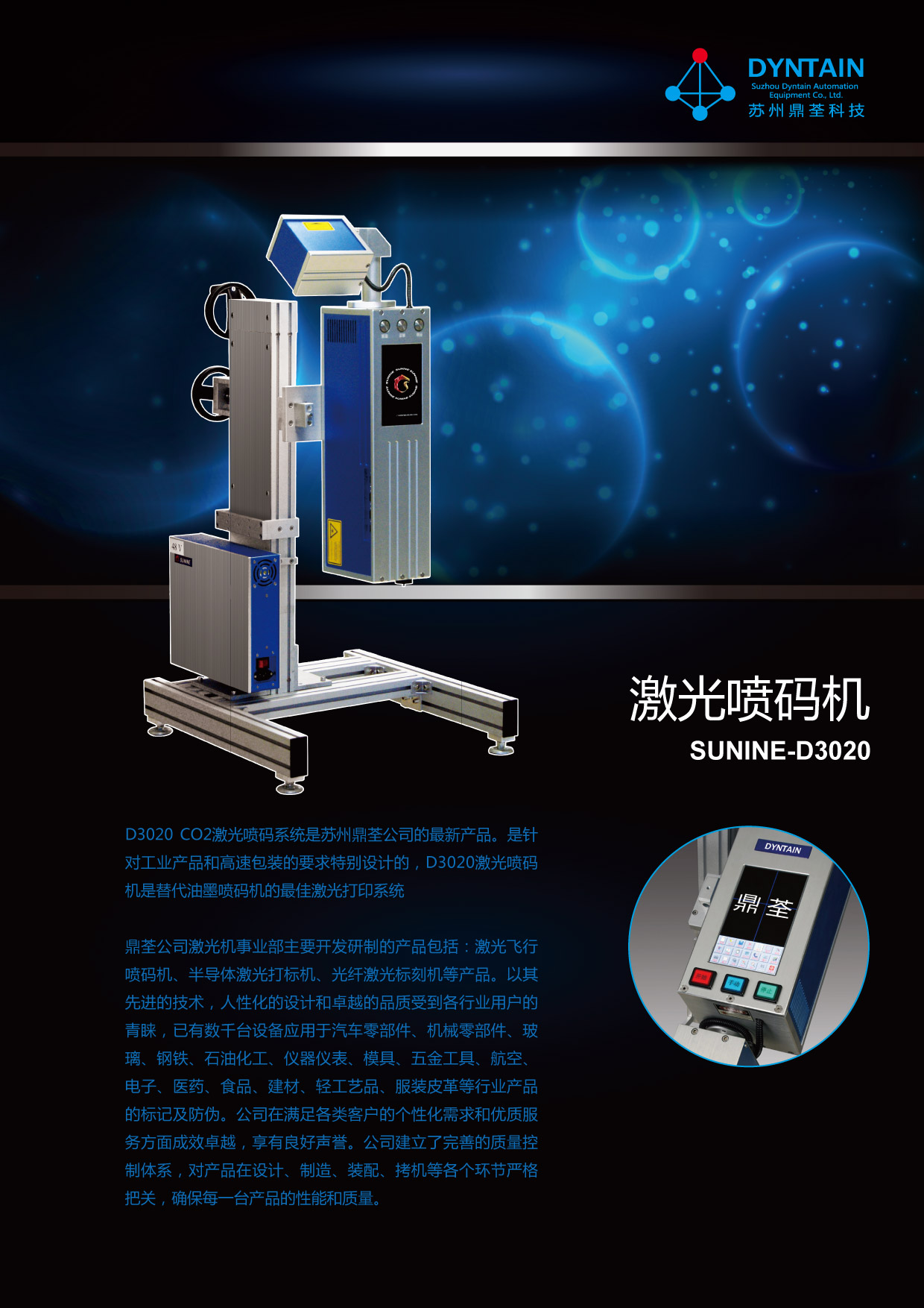 鼎荃D3000系列激光打標(biāo)機(jī)采用美國原裝進(jìn)口激光器,采用最先進(jìn)的偏振鏡系統(tǒng),確保了優(yōu)異的噴碼質(zhì)量和高速度輸出。整個(gè)激光系統(tǒng)集成了觸摸屏界面、感應(yīng)電眼和升降托架。結(jié)構(gòu)設(shè)計(jì)精